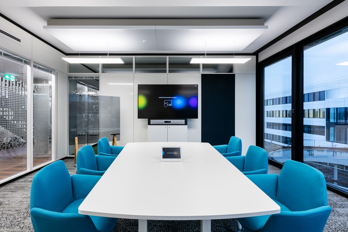 Im Sinne einer modernen Arbeitswelt, gliedern sich die Büros des Neubaus in unterschiedlichste Typografien. Die Grundstruktur basiert auf luftig gestalteten Großraumbüros, mit jeweils unterschiedlichsten Arten von Rückzugsmöglichkeiten in ungestörtere Bereiche. Von systematisch positionierten, kleinen Besprechungsräumen, bis hin zu geschossweise zentral gelegenen Meetingräumen in verschiedenen Größen, ist die neue Struktur überaus vielseitig. Ebenfalls zentral gelegen, befinden sich einladende Küchenbereiche und in unmittelbarer Nähe zu den großen Besprechungsräumen. Sämtliche Büroräume wurden auf einem flexiblen Rastermaß errichtet, sodass etwaige künftige Umgestaltungen mit einem geringen Aufwand realisierbar sind.